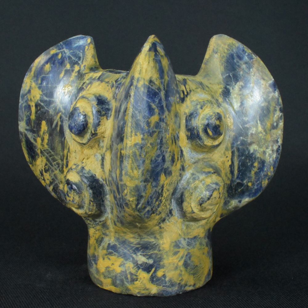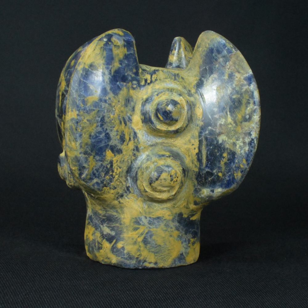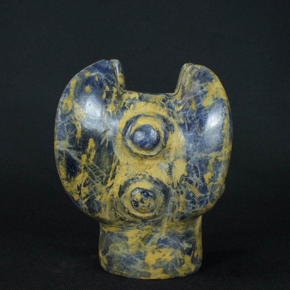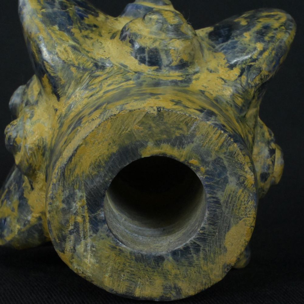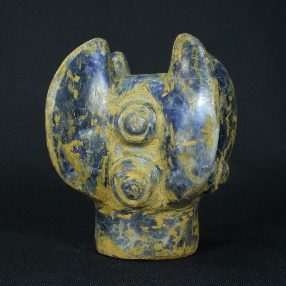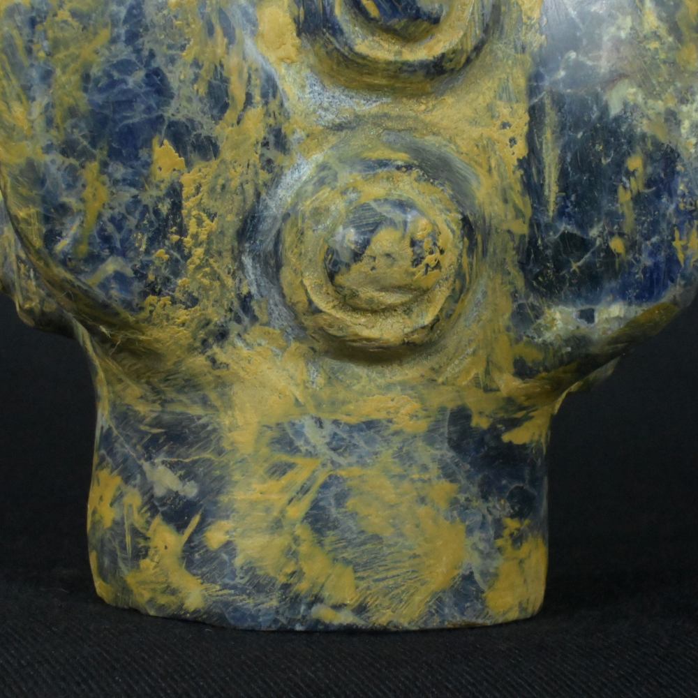 Uncover the mysteries of the past with this stunning Pre-Columbian Inca weapon, meticulously carved from rare sodalite stone. This artifact, with dimensions of 3.66 inches in height, 2.87 inches in width, and 2.95 inches in depth, and a weight of 1064 grams, stands as a testament to the Inca civilization’s engineering brilliance.