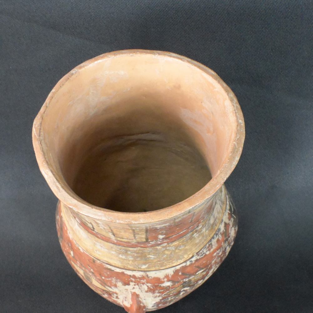 Standing at 6.06 inches tall, with a width of 4.33 inches and a depth of 4.41 inches, this vessel is a perfect piece for collectors and enthusiasts of ancient Peruvian cultures. Weighing 674 grams, it offers a substantial and authentic feel.