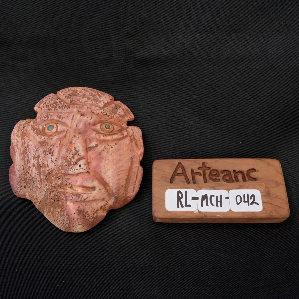 mascara de espondilus moche esta mascara fue inportante en la antiguedad en seremonias y rituales por altos mandos y saserdotes cuenta con piedra turquesa incrustado en los ojos ademas de tener un aro al alrededor del ojo esta bien gastado por el tienpo y es de color medio sosa claro el material es de espondilus natural es perfecta para la decorasion o la colecsion no te lo pierdas
