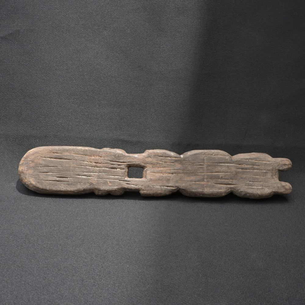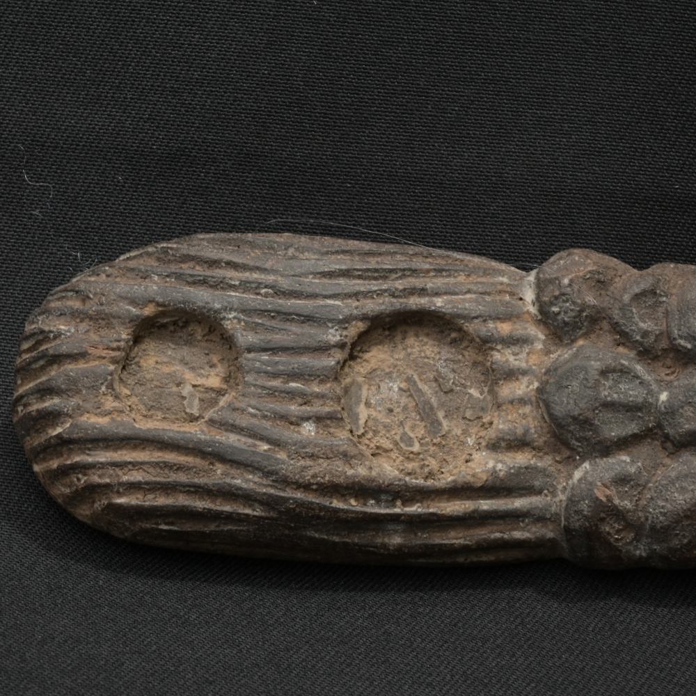 This scepter, measuring 9.72 inches in depth and 1.73 inches in width, is a testament to the high nobility of the Moche civilization. Weighing 180 grams, its time-worn patina speaks of its historical authenticity and use in rituals and ceremonies.