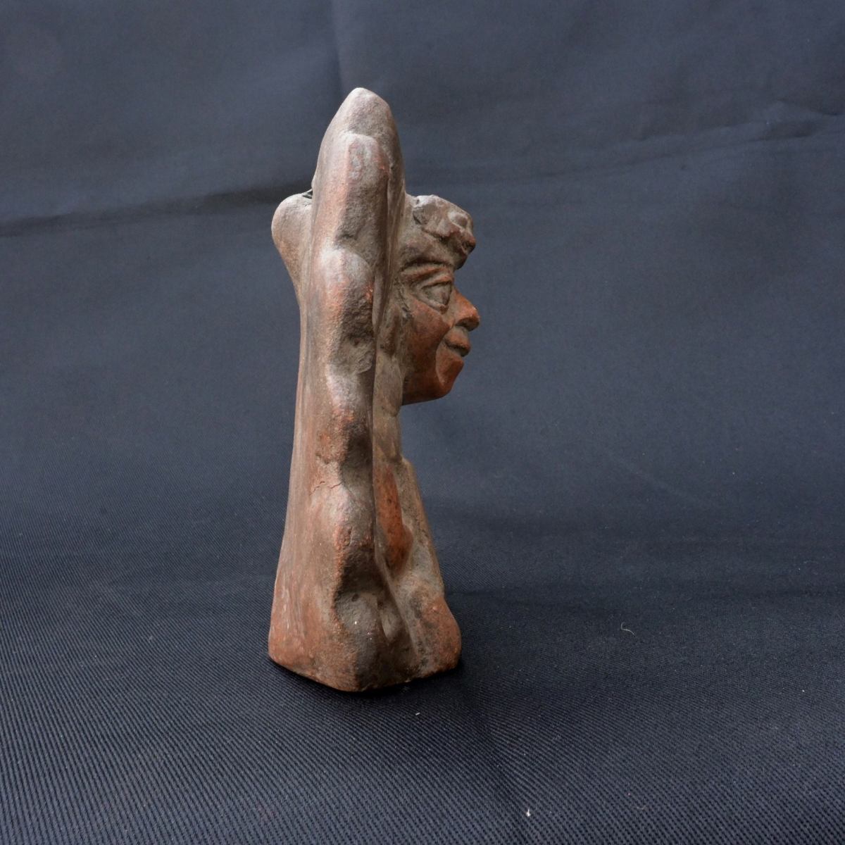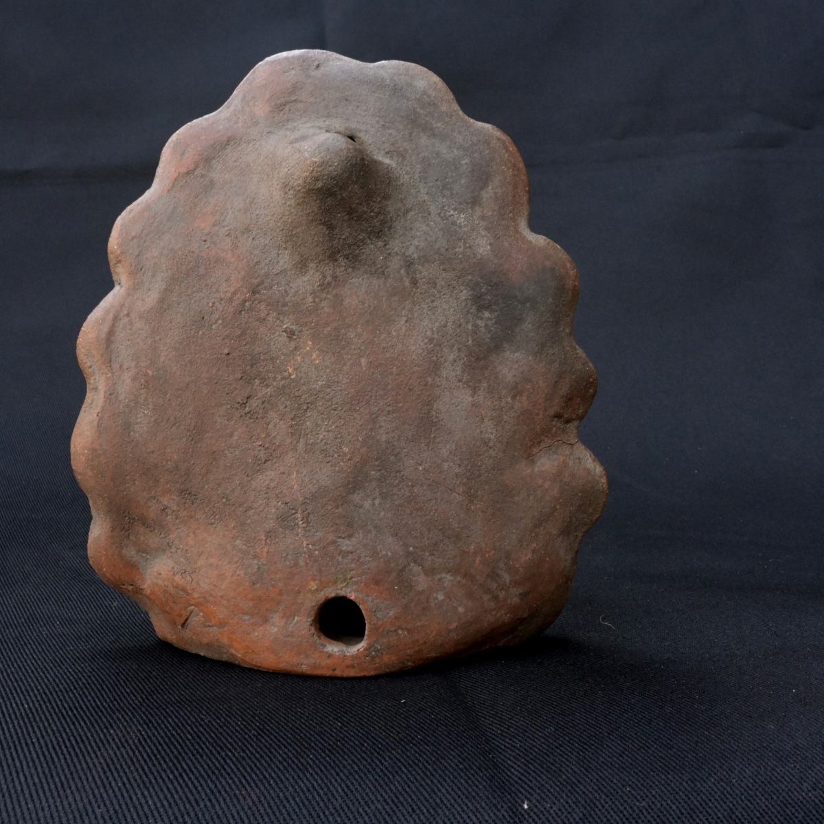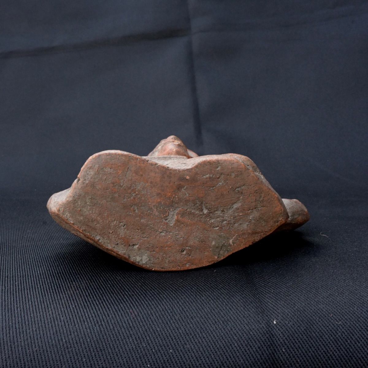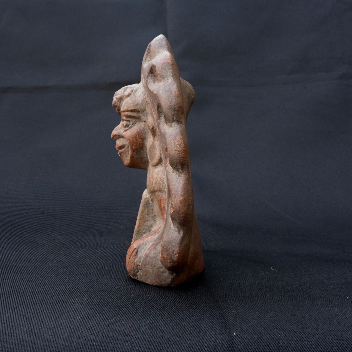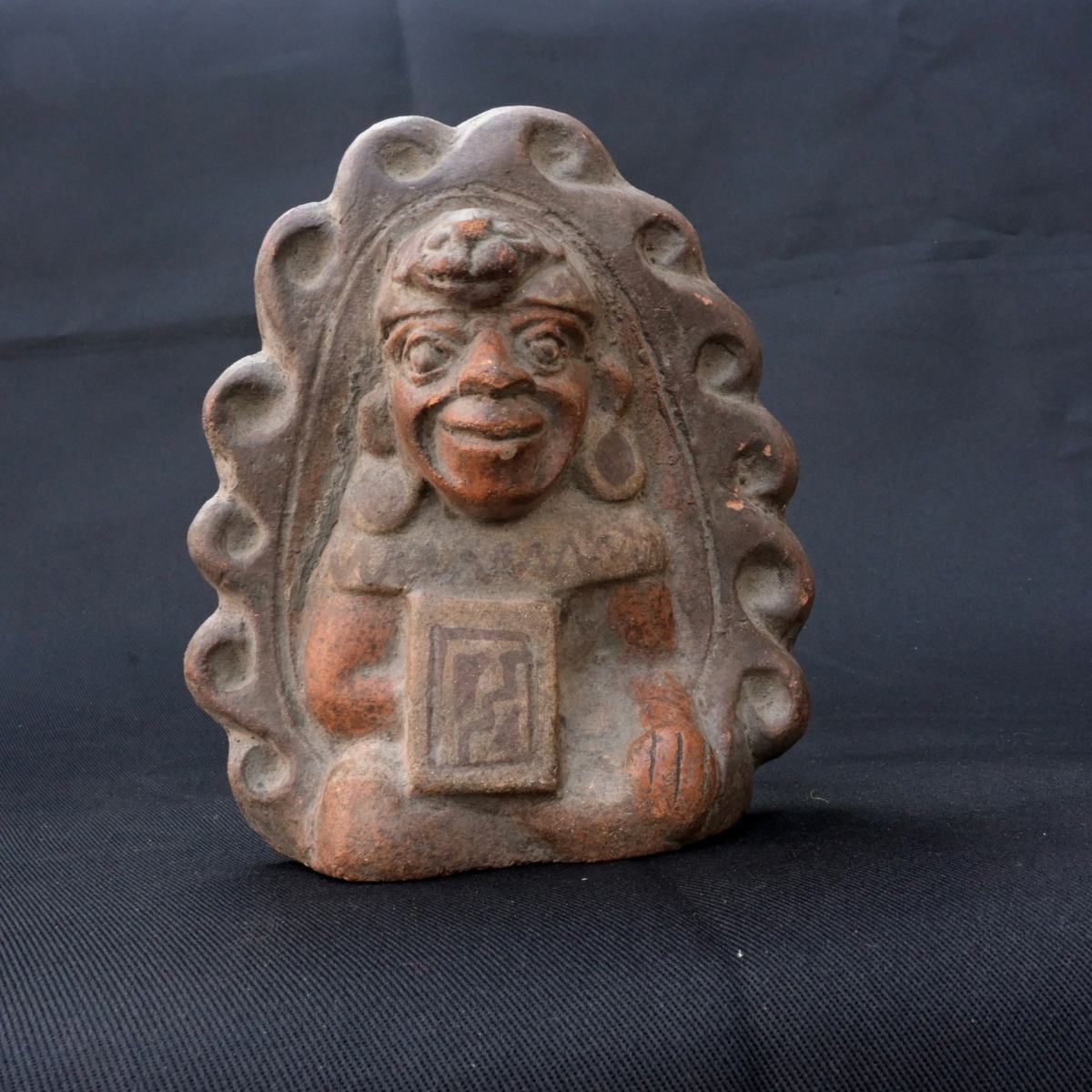 silbator de seramica chimu este silbato cuenta con un enbejesido naturar de tierra maron este silbato cuenta con una forma de un onbre que esta sentado y en una mano agara un escudo mientras la otra mano esta sosteniendo su rodilla ademas cuenta con un aura a su alrededor en la cabesa cuenta con un sonbrero con forma de un animal que parese ser el cuero de algun animal susu colores de esta silbato son anaranjado el crema el el maron todos los colores estan opacos ademas este silbato cuenta con barias abolladuras y fue usado en la antiguedad por los saserdotes y chamanes en seremonias y rituales o reuniones inportantes es perfecta para la decorasion o la colecsion no te lo pierdas