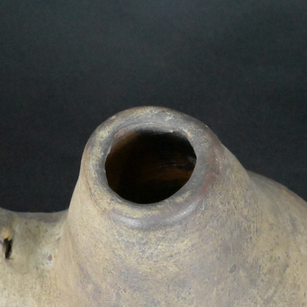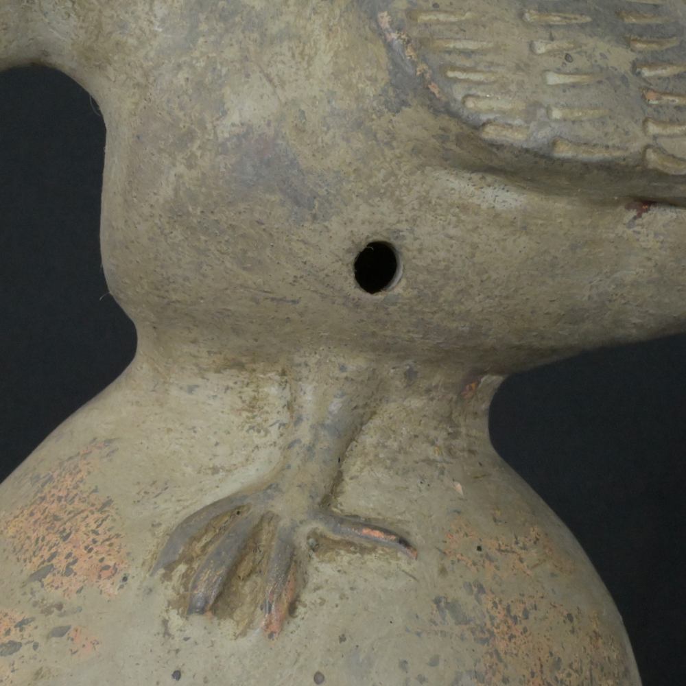 This whistle, measuring 7.87 inches in height, 4.72 inches in width, and 12.99 inches in depth, weighs 2494 grams. It carries the essence of ancient rituals and ceremonies, making it a perfect addition to any collection or as a unique decorative piece.