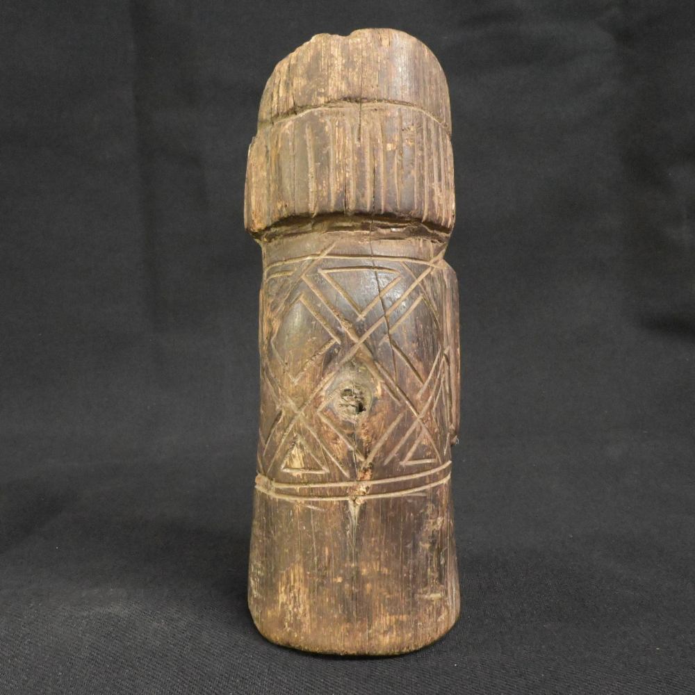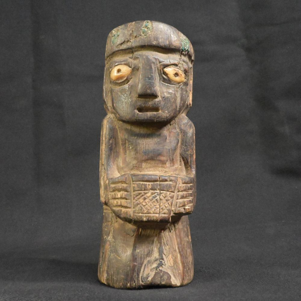 Discover the mystique of the ancient Inca with this unique pre-Columbian wooden totem. Standing at 5.63 inches tall, this artifact is a testament to exquisite craftsmanship and historical significance. Its natural aged patina tells stories of centuries past.
