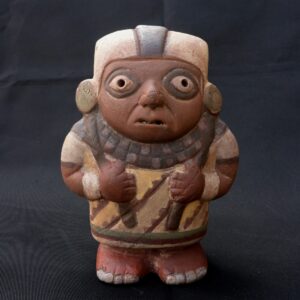 Moche Ceramic Vessel – Man Carrying Bird Figurine Ritual Pottery
